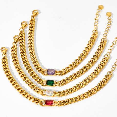 Dina สร้อยข้อมือสแตนเลสชุบทอง14K สำหรับสตรีทันสมัยพร้อมเพทายหินคิวบาขนาดใหญ่เครื่องประดับกันน้ำ
